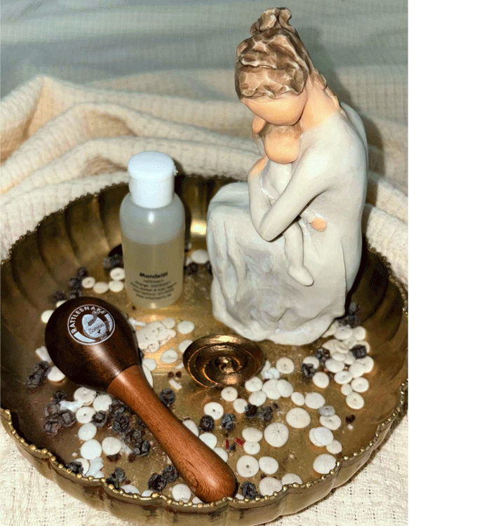 Inklusive: ausführliches Handout, Massageöl (Mandelöl), Lieder, Infos, Knabbereien und Getränke.